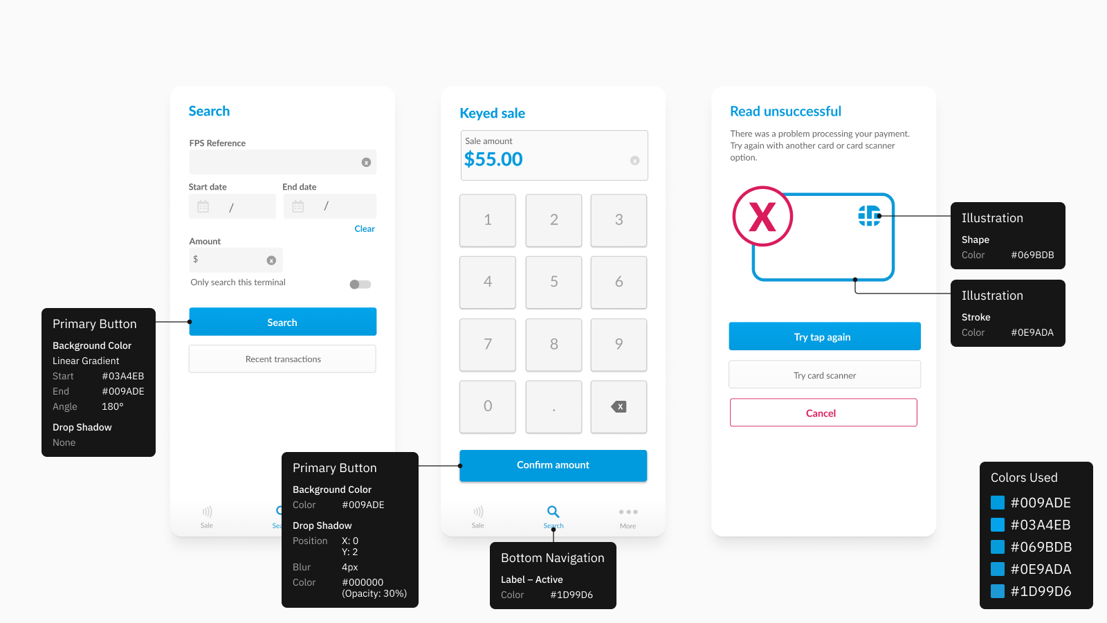 Example: Inconsistent colors in the sale screens of the Felix.Terminal app